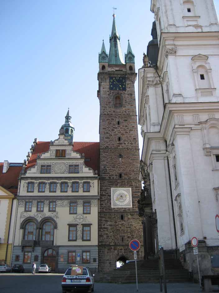 square The Plzen hl.n., short for main train station, has the best looking sweets and breads in town, so we started our Sunday there. The plan for the day was to visit a little water castle an hour south by train. We started by getting on the wrong train, facing the wrong direction, but the train had arrived at the correct time. A maintenance worker in bright orange came through to clear the train. With friendly smiles and hand signals and a smattering of German, we found that our rylich, fast train was "caput" somewhere between Prague and Plzen. Confirming this with a family, the German speaking 80ish senior was so concerned that we get the right train that he led me by hand back into the train information center and waitted while I got the scoop in English. Then he noted that "he would make sure we got on the right train and which station to get off" since they were heading the same way. Then we boarded another empty car, with others also boarding, and waitted for an engine to come hook up to us -- a very short train indeed. During the trip it was amusing to catch the kind senior's eye, watching for the ney and finally OK nod. People really want to help and folks older than 60 still speak fluent German, and my minimal knowledge of numbers and courtesies are helping. Svihov was originally built with an outside moat, and a complicated system to flood the inside 24 feet moat, now a grassy area, as well as a center area. It had an outside wall, an inside wall, and the buildings. One of the kings at the time decided that rebels could cause trouble and retreat to this well-fortified haven, so he had the whole eastern half of the walls torn down. From the available pictures it had been a veritable fortress. From there we took the train to the next stop Klatovy and enjoyed sunset dinner on the cobbled square. Everyone was clammering for ice cream and we saw an older couple walk their bikes through town, looked like locals. Wish I could get Lonnie on the bike. Still no pictures of Lonnie but now I am working on it. Note the new cover picture from yesterday's local walk. Julie |